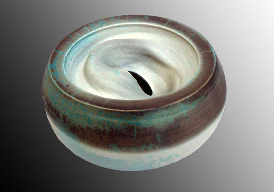 "Le point de départ de ma création céramique a été mes peintures. Je veux transformer une image 2D en un objet 3D et comparer les caractéristiques de formes possibles entre ces deux champs artistiques.Je veux relier le mouvement, l’impulsion et l’intuition de peintre à un vrai espace - la forme libre et debout, en céramique, reste un certain temps par son processus technologique à long terme.