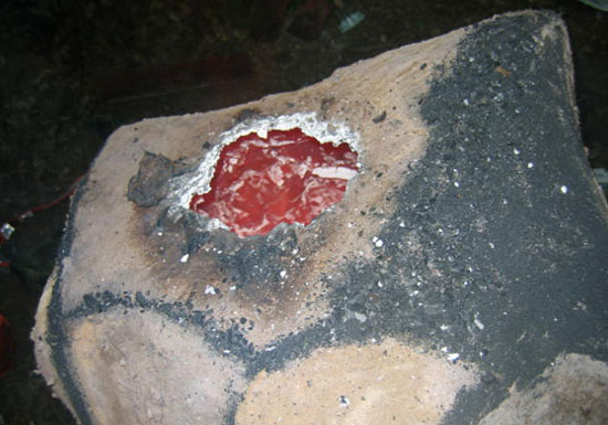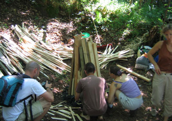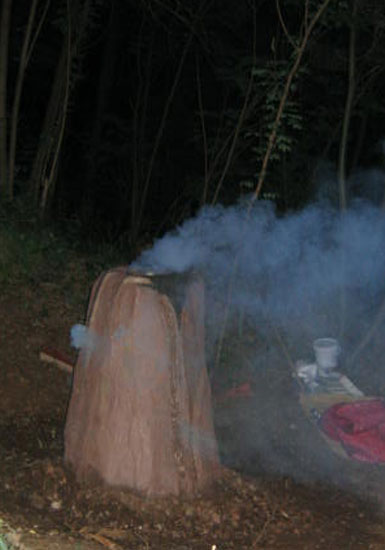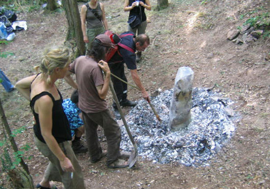 Le menhir a été construit, puis amené sur le site avec tout le matériel nécessaire pour la mise en place d'un four éphémère, construit avec du papier journal trempé dans de la barbotine, sur un support de planches de bois montées autour du menhir qui, lui, est juché sur une grille et chauffé par un foyer de braises situé dessous.