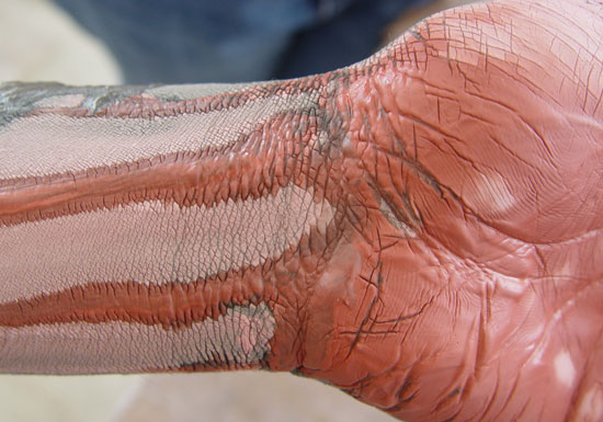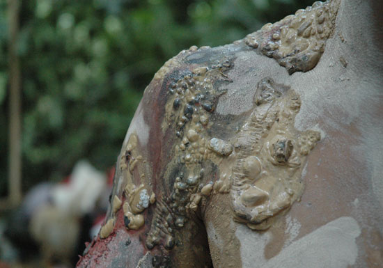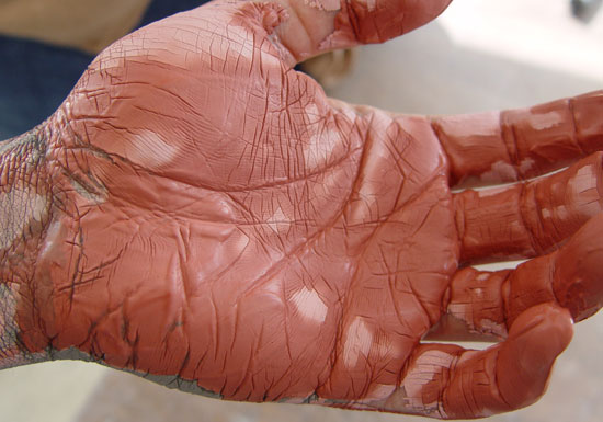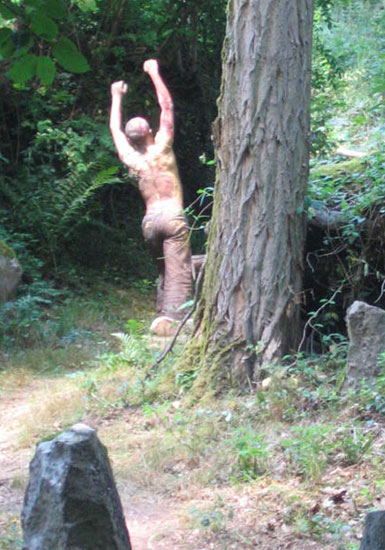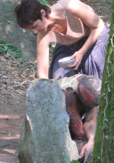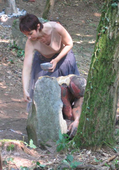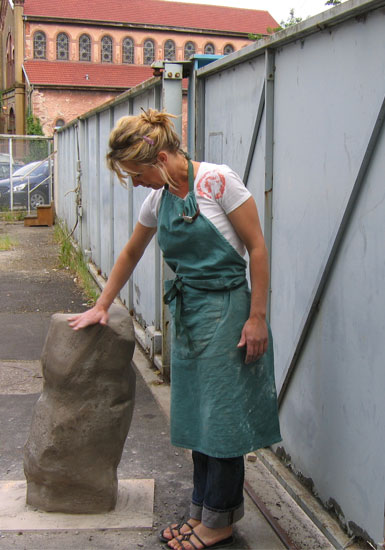 Nous avons utilisé du grès; ce n'est pas le même que celui des carrières, que celui de la poudre de Marie-Thérèse Latuner, c'est un autre grès, qui restera grès, cuit, sous forme d'un menhir.