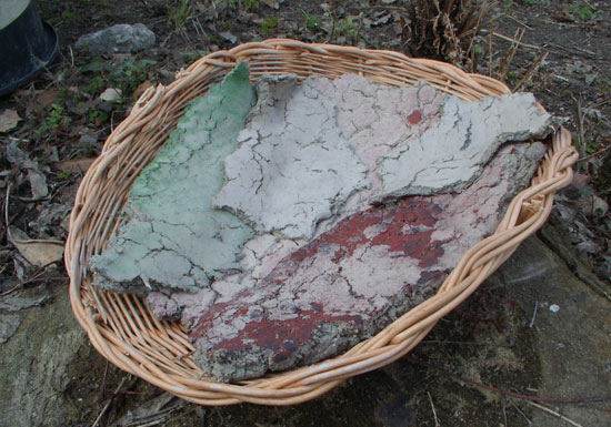 J'utilise des formes en osier comme support à la terre que je projette dessus. Le support devant être installé sur un autre support réfractaire lors de la cuisson.