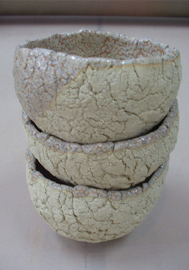 Mes "bols polonais"Je commence le travail d'atelier par le toucher des terres utilisées dans cette école.