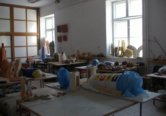 Ce qui n'est pas le cas de l'école de l'Académie des Beaux Arts de Wrocław : 400 élèves, plus d'une trentaine d'ateliers, étude de l'architecture, des arts graphiques, de la peinture, de la sculpture, du verre, de la lithographie, de l'imprimerie, de la conception d'affiches, de la conception graphique assistée par informatique, j'en oublie, et bien sûr de la céramique, chaque département étant sanctionné par un diplôme en 5 ans.