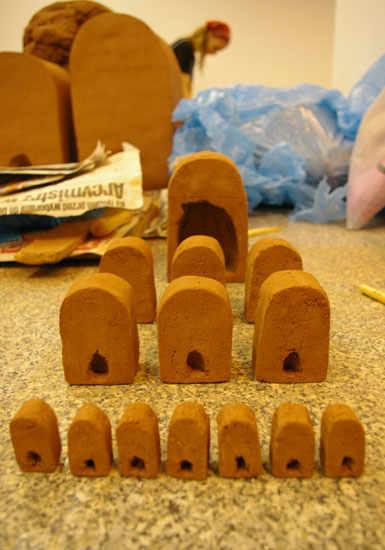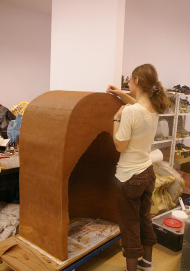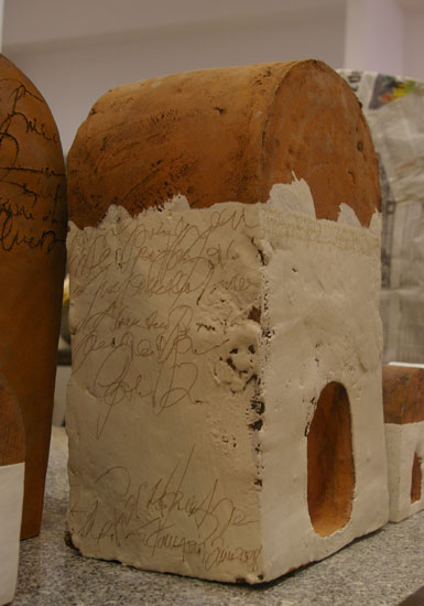 petites ou grandes, toutes avec la même passion....J’ai ainsi pu réaliser la borne refuge où l’on peut se glisser sous les souvenirs et anecdotes de mes camarades apprenties céramistes polonaises, mêlées à mes fausses écritures, reflets de mon environnement sonore trop souvent incompréhensible à mon goût !