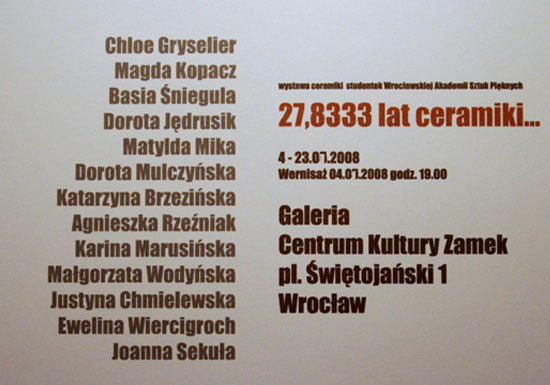 Vous êtes ici : Institut Européen des Arts Céramiques / Expositions / Échanges internationaux / Pologne / 2008 - Chloé Gryselier