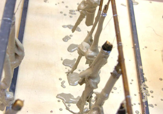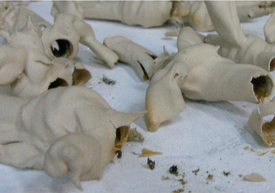 Ces messages seraient appelés à disparaître, d'abord en étant trempés dans de la barbotine puis en étant brûlés dans le four de cuisson. Le résultat s'apparente à un fossile. C'est le souvenir de quelque chose d'oublié.