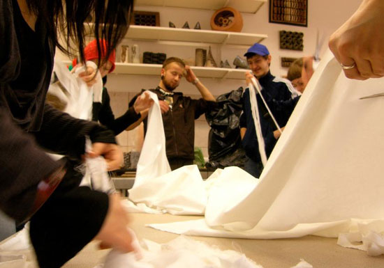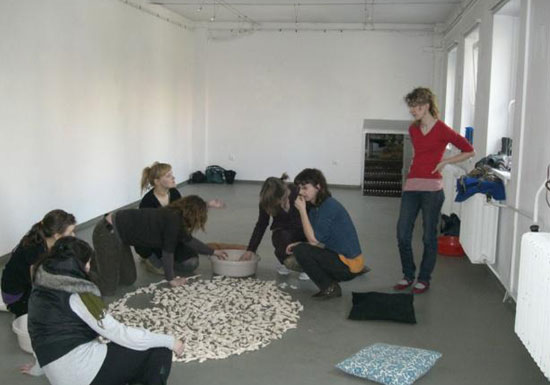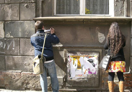 Pendant l'atelier j'ai mené à Wroclaw, j’ai proposé aux étudiants de faire l’expérience de mes propres pratiques dans une action collective tournée vers les gens qui ne sont pas dans le domaine de l’art.