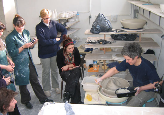 Bozena Sacharzuk est intervenue à l'IEAC lors d'un workshop dans le cadre des stages évènements organisés par l'association pour les élèves de la formation professionnelle. Elle a essayé de transmettre aux élèves son approche du tournage de grandes pièces, de leur mise en forme.
