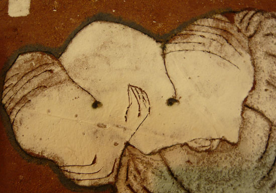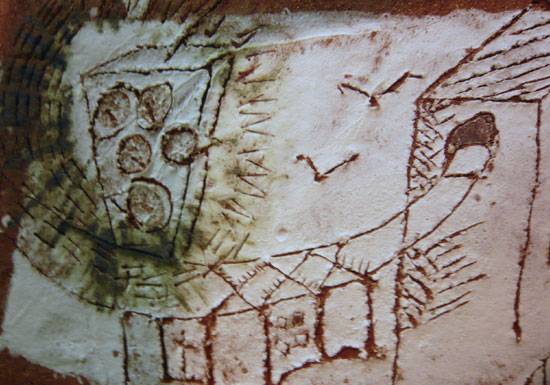 Comme précédement dans mon travail, j'utilise la terre comme du papier, surface, support, graphisme.