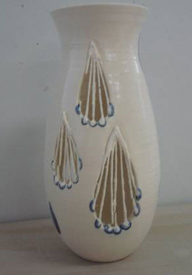 À mon départ, le directeur de mon ancienne école, Thiébaut Dietrich, m'a demandé si je pouvais réaliser des pièces pour l'anniversaire des dix ans de coopération entre la Région Alsace et le Québec : j'ai accepté de faire ce projet. Ayant très peu d'informations pour illustrer ce rapprochement, j'ai voulu, dans premier temps, réaliser une vasque avec un décor de feuilles de vignes représentant l'Alsace et de feuilles d'érables pour le Québec. Je pensais travailler cette pièce en relief ou avec des oxydes. En fait, je n'étais pas très satisfaite de cette idée.