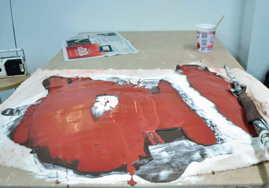 J’ai simplement joué avec ces matériaux sans me poser vraiment de questions. C’était plutôt ludique et osé comme tentative. Comme l’ensemble me semblait correspondre à une des formes que j’avais envisagée pour ce projet, j’ai choisi de conserver ce premier élan tel quel.