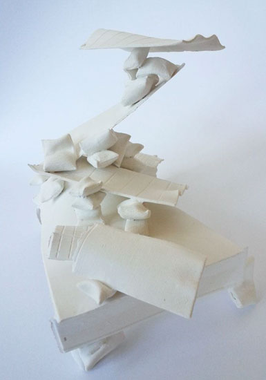 Le stage de Terre-Papier avec Karin Stegmaier arrive juste avant la cuisson finale de mon projet, alors il n’aura pas d’incidence directe sur ce dernier.J’ai eu beaucoup de plaisir à apprendre cette technique que je n’avais jamais explorée. Nous avons fait des recherches architecturales, des cylindres et des luminaires. L’approche de l’artiste est inspirante et en lien avec celle que je souhaite développer : retrouver l’esprit du jeu, celui de l’enfant qui est libre. Elle parle de comprendre les limites de la construction et celles de l’argile.