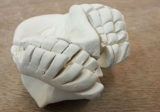 Les yeux bien ouverts, je pars en expédition. Je me sens un peu timide dans ce lieu qui est inconnu. J’observe. Je cherche. Je regarde ce qui m’intéresse. Je découvre les argiles utilisées dans cet établissement. La porcelaine et le grès noir chamotté sont spontanément sélectionnés pour mon projet. Leurs contrastes de couleurs, de sensations tactiles et de textures tendent vers une exploration passionnante. J’examine les outils disponibles, je cherche ce que je n’ai jamais vu et je trouve… à voir ce que je ferai avec ce dernier et où il me mènera.