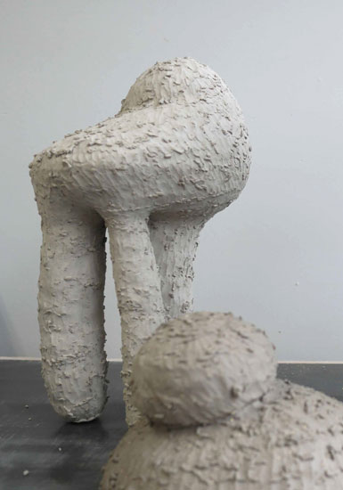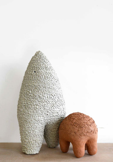 Je suis curieuse de comprendre le lien visuel qu’il y aurait entre la forme des pattes sur une bête et la démarche qu’on lui associe. Petit volume haut sur pattes, forme asymétrique...) Ici, je fais un effort pour ne pas régulariser la forme des pattes, pour qu’elles soient comme sorties d’un dessin maladroit.