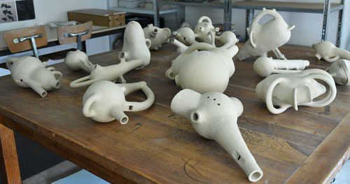 Jusqu’à présent, ses instruments ont été réalisés par usinage, en bois ou par impression 3D, avec des formes créées par la conception de volumes précis. La résidence à l’IEAC lui offre désormais l’opportunité d’explorer une nouvelle approche : le modelage de l’argile, avec ou sans l’ajout d’un autre médium.