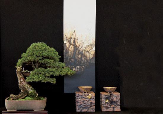 La mise en scène des arbres, même si elle est fortement inspirée par la tradition japonaise, cherchait à trouver une authenticité occidentale, contemporaine et créative avec des pots et sculptures en céramique que j’ai réalisés dans le cadre de l’Institut Européen des Arts Céramiques (IEAC) à Guebwiller.