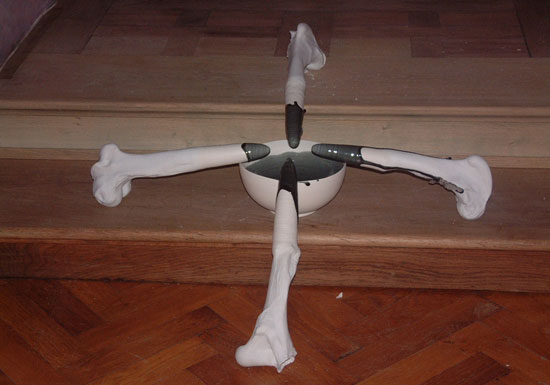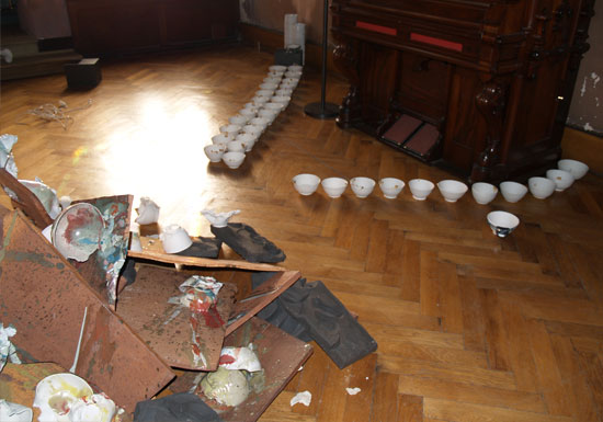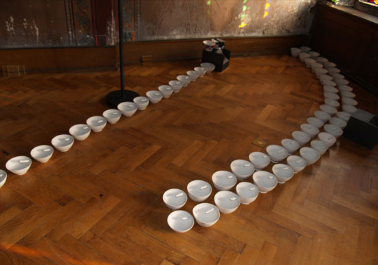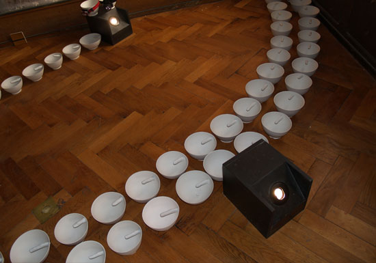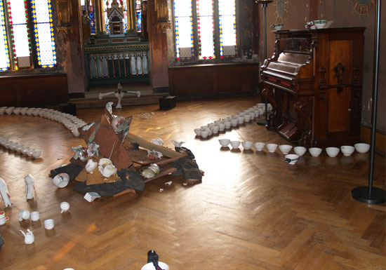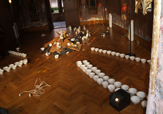 Cette intallation me permet d’amorcer le procéssus de digestion. Elle évoque la violence de mon combat, du corps à corps puissant et sensuel où s’exprime la démesure du ravissement, des questionnements et des appréhensions. Ce travail d’installation in-situ est au demeurant éphémère. Il me permet d’aborder la question de la vanité.
