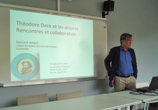 Ancien enseignant d’histoire de l’art à l'Université de Haute-Alsace et Membre du CA de l'IEAC, Bernard Jacqué a présenté une conférence sur Théodore Deck : «Théodore Deck et les artistes : rencontres et collaborations».