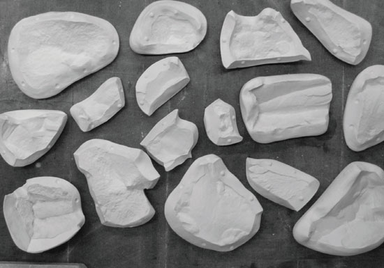 De très nombreux fragments ont été réalisés avec des pains de terre secs.