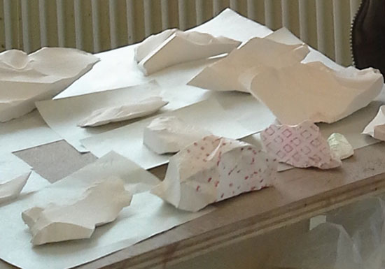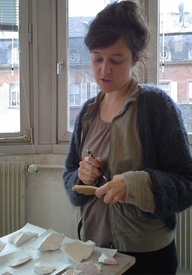 J’ai conservé chaque fragment un à un, les ai classés par taille et par forme. Une cuisson à basse température permet à cette porcelaine (ICE) de conserver plus de blancheur et surtout ses contours abrupts et nets ………………..