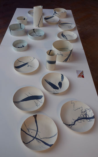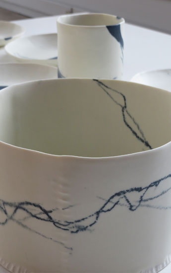 Dans ma première idée, j'imagine ces monolithes entourés de multiples câbles électriques, puis je commence à réaliser quelques peintures représentant des milliers de réseaux. Finalement je me rends compte que le recours à la peinture remplacerait idéalement de réels câbles électriques.