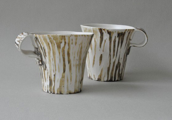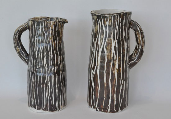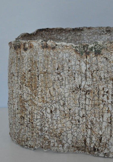 Dans cet univers où de nombreuses espèces vivent en harmonie j’ai trouvé le thème de mon utilitaire en porcelaine. Objets du quotidien, uniques et destinés à cohabiter, leur « peau » évoque l’écorce des arbres, la silhouette des végétaux.