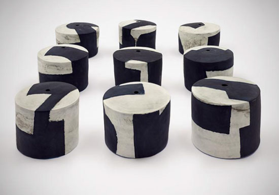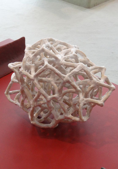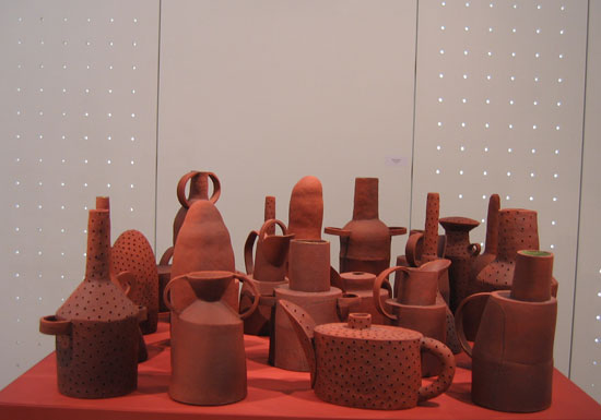 «Cœurs, trous, rayures, gâteaux, pichets, creusets, maisons, pieds, têtes ou robes font partie de ce vocabulaire du quotidien que je manie et remanie, développant mon propre langage.»