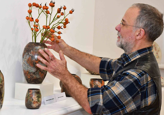 Ce passage au feu et l’utilisation « de réserves » constituent une technique de décor en soi. Kathi Fausser partage sa vie et son atelier / boutique « la poterie du bain aux plantes » avec B. Llorca.