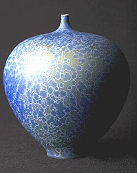 En marge d’une production de céramiques utilitaires en grès de haut niveau, il consacre une partie de son temps à la création de pièces uniques à glaçures cristallines.