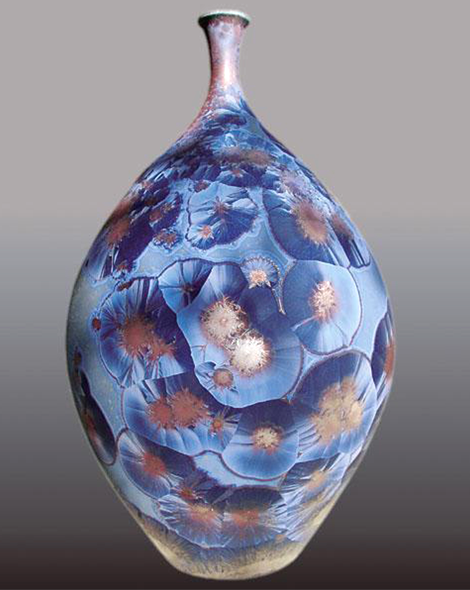 C’est dans le cadre de ce partenariat actif que s’est tenue l’exposition Dialogue bleu, une rencontre consacrée aux plus grands spécialistes européens des émaux à cristallisation.