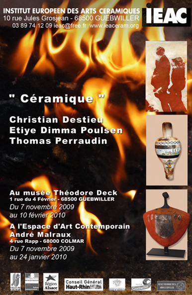Exposition Christian DESTIEU, Etiyé Dimma POULSEN et Thomas PERRAUDIN au Musée Théodore Deck de Guebwiller et à l'Espace Malraux de Colmar du 6 novembre 2009 au 10 février 2010.