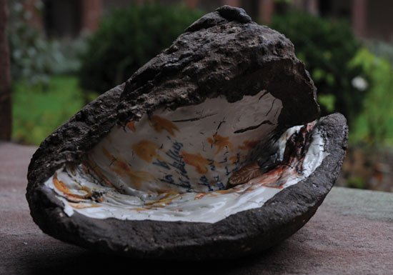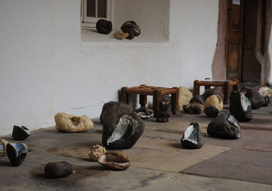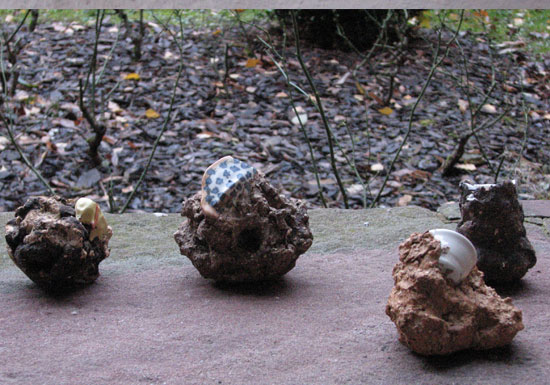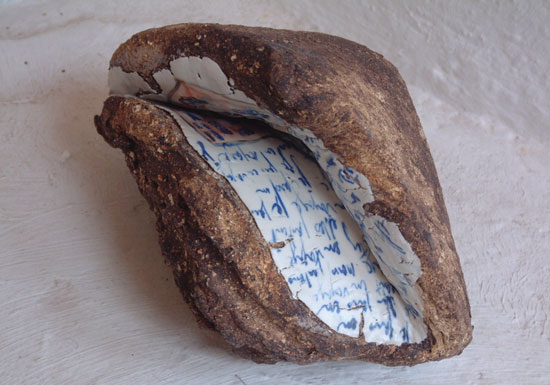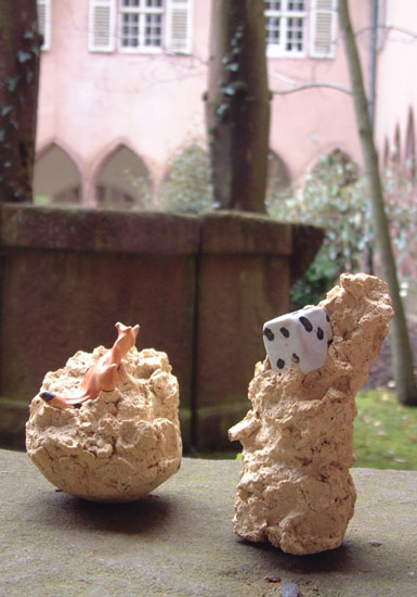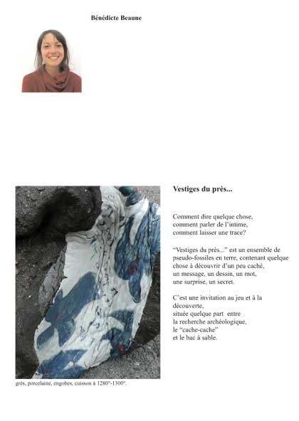 "Vestiges du près..." est un ensemble de pseudo-fossiles en terre, contenant quelque chose à découvrir d'un peu caché,
