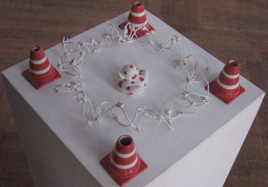 Mais ce sont ces parades qui emprisonnent ma créativité J'ai voulu travailler sur ce type de contradiction en détournant le sens de certains objets pour les rendre inopérents, dérisoires.