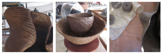 Un pain de terre crue. Des colombins. Les faire se succéder, les uns après les autres.