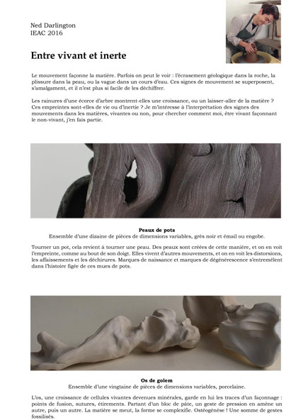 Je cherche à comprendre les mouvements de la formation et du laisser-aller des choses, sans microscope. En façonnant la terre je cherche à retracer de tels mouvements, à pénétrer les processus dont la nature use pour se sculpter.