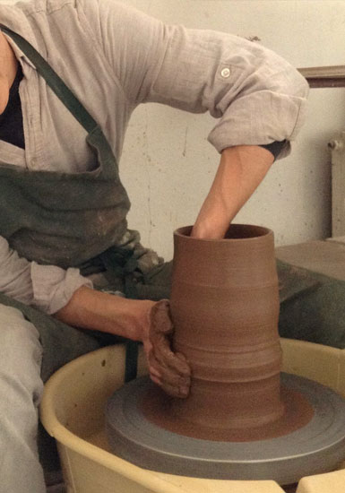 Je travaille les pièces entièrement à cru. L’argile est fraiche et malléable ; je la fais tourner et elle grandit. Une fois la « peau » créée, je lui fais subir des mouvements de l’intérieur et de l’extérieur avec mes mains pour voir en dehors de quoi elle est faite, comment elle réagit.