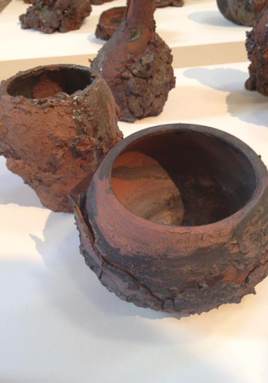 Je réalise que mon désir de faire des contenants était une chose que je me forçais à réaliser pour avoir l'impression de bien faire. Au final, cela n'a pas fonctionné, ce qui était censé être utile devient inutile mais plus vrai, plus personnel. Le contenant se libère à travers la matière et devient sculpture.