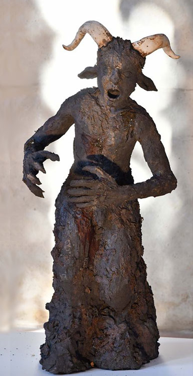 Débute enfin mon projet, je commence alors la sculpture d’un faune, personnage hybride mi-humain mi-bouc. Je veux directement me lancer dans une grande sculpture sans vraiment connaitre les difficultés que cela engendrerait d'un point de vue technique. Je n'ai jamais vraiment fait de corps, c'est un défi pour moi.