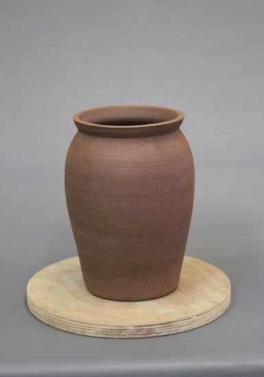 J'attrape alors cette barbotine par grandes poignées et commence à l'appliquer sur ce que je viens de tourner.