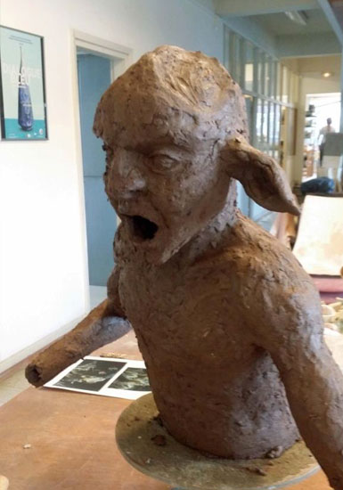 Je reviens au faune et commence le modelage de la tête. J’ai rarement fait de visage auparavant, je me heurte alors à une difficulté. Ici aussi, il y a des codes, des canons à respecter.