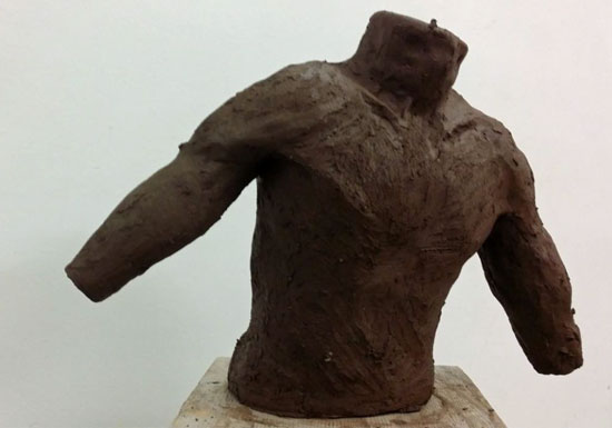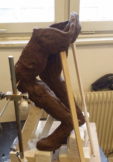 Je modèle ma sculpture avec le même procédé que le faune en me servant de photos de moi-même. Je cherche à avoir des proportions correctes afin de copier la réalité.