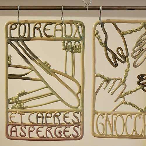 Marie AUBERT TRENDEL, Marie BERENGER, Alice BOLYOS-FRANÇOIS, Aruná CANEVASCINI, Laure FERRANDO, Tess GILLES, Sandra KULYK, Anne-Gloria LEFÈVRE, Emma LIBERATI et Sarah PENANHOAT présenteront leurs pièces réalisées durant le cursus de formation professionnelle " Créateurs en Arts Céramique ".