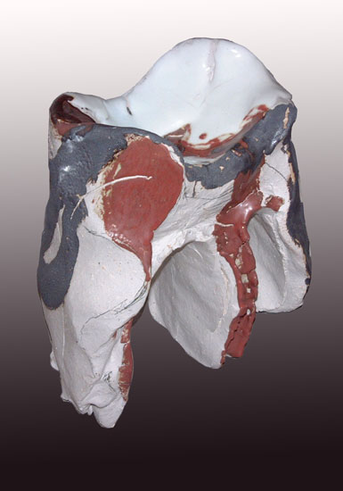 Fissures et fentes sont apparues. Ce sont des lignes qui font corps avec la pièce.