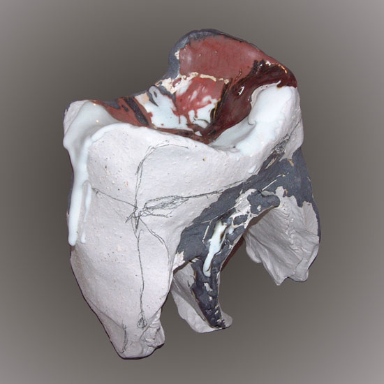 "Après des années de tournage de grès, une première approche de la porcelaine, d’abord sans chamotte, mais je suis vite tombée amoureuse d’une matière surprenante… Celle avec des tailles de grains différents.