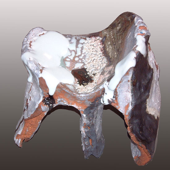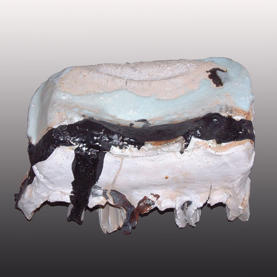 "Après une première cuisson la terre a soif. Je me suis longtemps interrogée sur la surface. Petit à petit j’ai trouvé des équilibres en pensant l’émail comme une matière qui coule, arrondit, attire la lumière, donne contraste, humide à côté d’une zone sèche. Les couleurs et matières font parties du volume. Il n’y a pas de peau qui couvre. La terre a besoin de respirer.