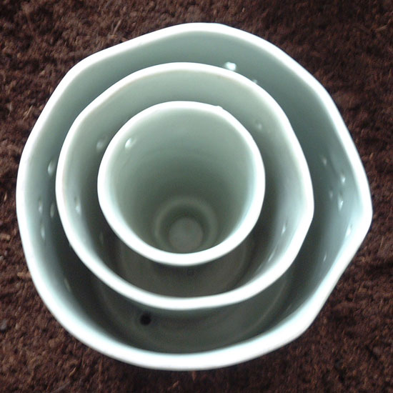 Choix du céladon sur porcelaine : une matière douce qui laisse de la place à l’imaginaire."