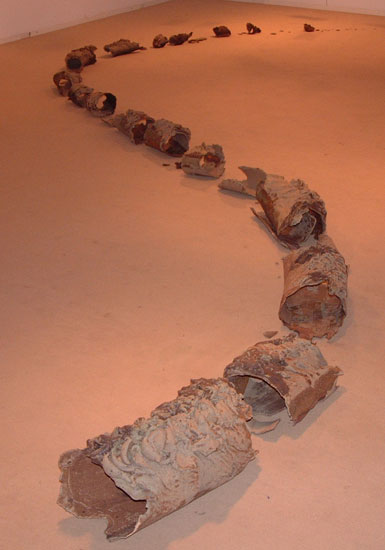C’est au cours d’un travail dans la masse, et notamment pendant l’exécution d’un geste précis et répété, qu’une idée commença à germer, celle de la mue, « la mue » symbole de renouveau, de renaissance. Elle m’évoque immanquablement l’idée de se débarrasser de sa vieille peau pour mieux repartir. Je dois dire que c’est un peu ce que je vis aujourd’hui, car après quinze années passées à travailler en usine, devenir céramiste est pour moi, une véritable mutation.