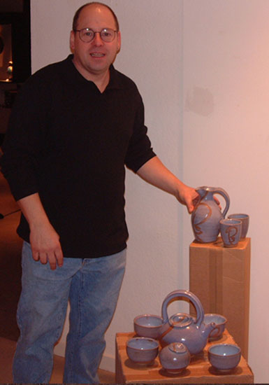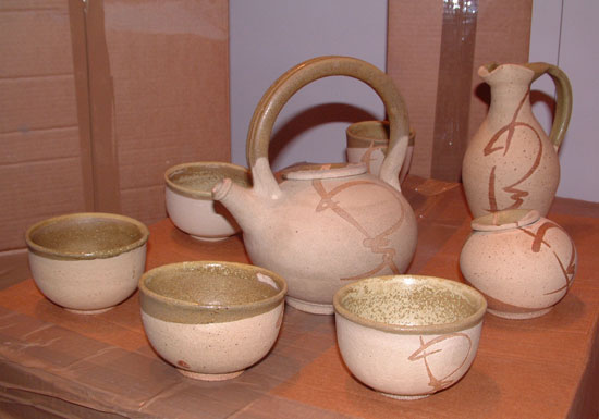 "Ma petite expérience dans le tournage, bien améliorée cet été pendant un stage pratique réalisé chez Jean-Christophe Watt, un potier de la région de Villé, m’a permis de réaliser un ensemble de théières, bols et pichets. Mes pièces sont des formes simples et traditionnelles, mais suffisamment complexes pour qu’un débutant comme moi éprouve des difficultés à les réaliser.