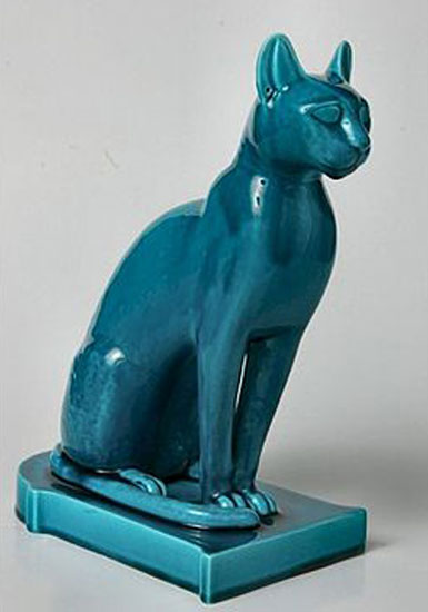 En effet, on façonne des statuettes formées d’un mélange de sable fin quartzique et de sels auxquels un peu de minerai de cuivre est ajouté. Le tout est mouillé au point de devenir malléable, pressé dans des moules ou façonné. Les sels migrent à la surface au séchage et forment un mélange entièrement vitrifiable par une cuisson de l’objet sec entre 900 et 1000 ° degrés. C’est une pâte auto-glaçante.