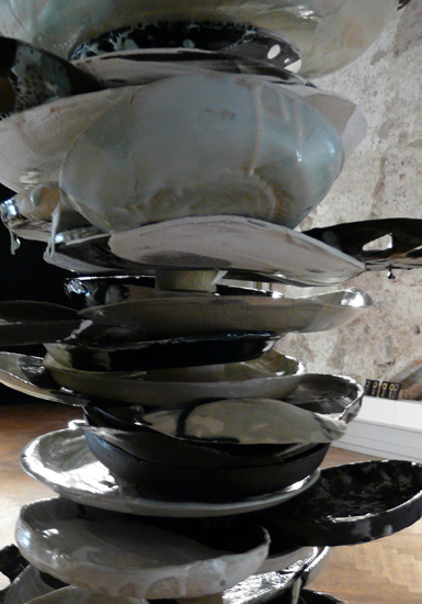 À l'origine, j'ai souhaité faire une pile d'assiettes telle la tour de Babel pour m'élever, pour m'arracher du sol.