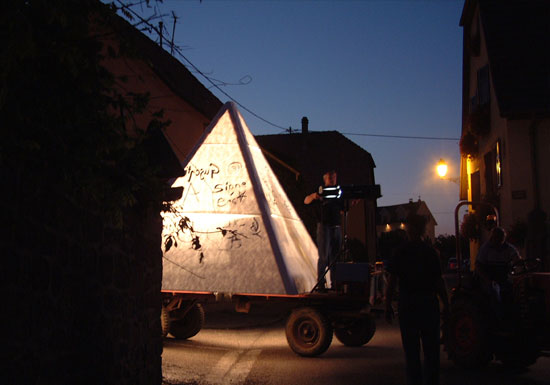 Un public nombreux a ainsi suivi le cortège derrière une énorme pyramide éclairée de l’intérieur où intervenaient des graphistes de façon à faire découvrir les signes peints par transparence.
